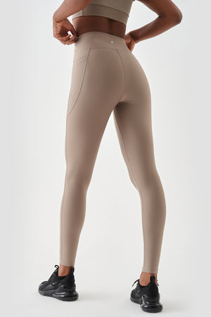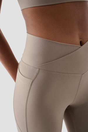 Adele V Bel Detaylı Toparlayıcı Taş Rengi Spor Tayt