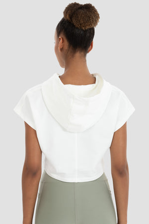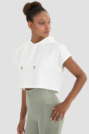 Alice Kapüşonlu Kısa Kollu Krem Crop Sweatshirt