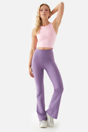 Carmen Yüksek Bel İspanyol Paça Cepli Lila Spor Tayt