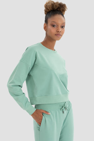 Ena Oversize Açık Yeşil Crop Sweatshirt
