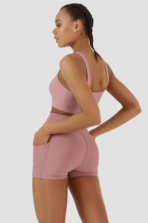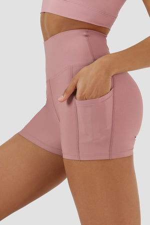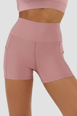 Yüksek Bel Gül Rengi Kısa Spor Tayt