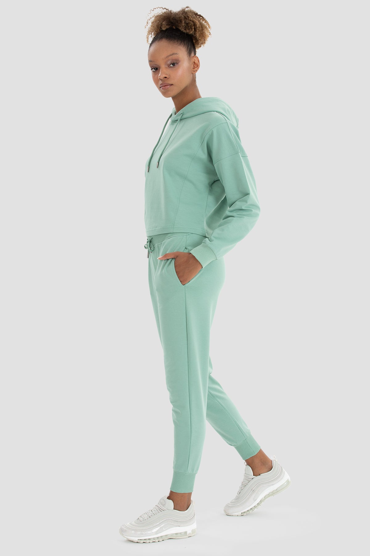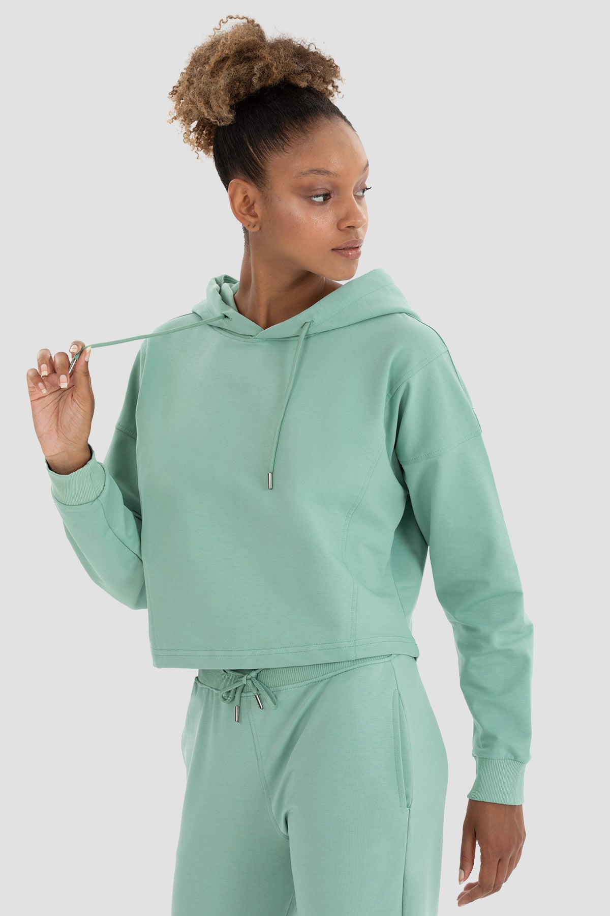 Lisa Oversize Açık Yeşil Crop Hoodie