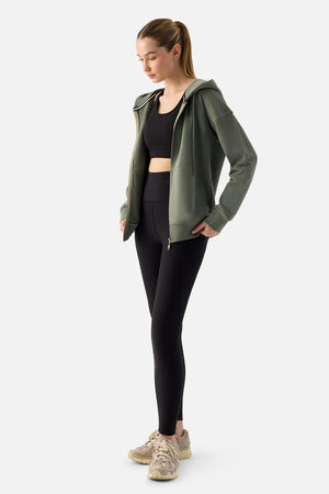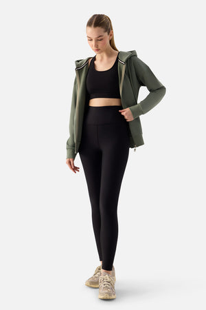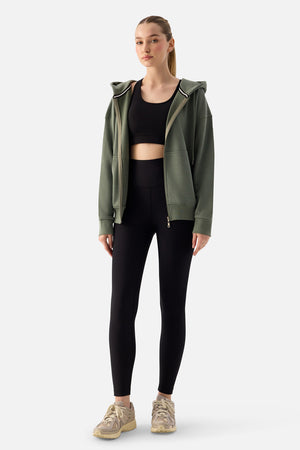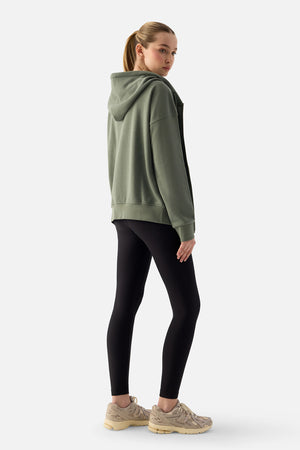 Luna Fermuarlı Kapüşonlu Haki Sweatshirt