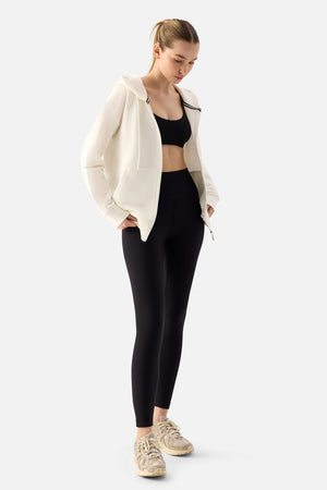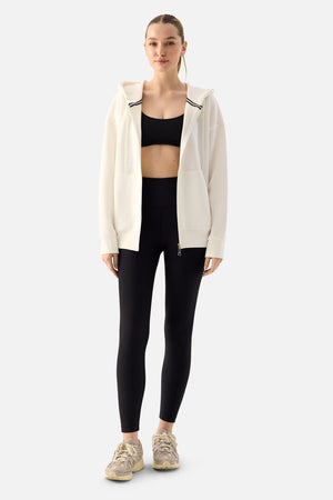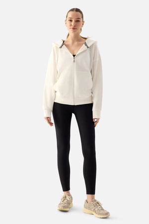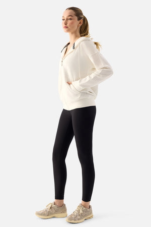 Luna Fermuarlı Kapüşonlu Krem Sweatshirt