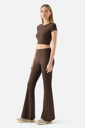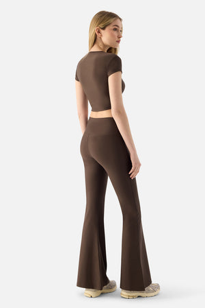 Melina Yüksek Bel İspanyol Paça Acı Kahve Spor Tayt