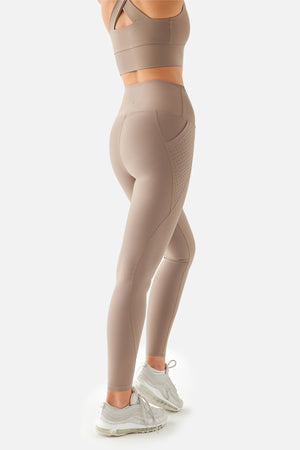 Peggy Yüksek Bel File Cepli Taş Rengi Spor Tayt