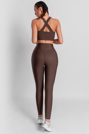 V Bel Detaylı Yüksel Bel Acı Kahve Spor Tayt