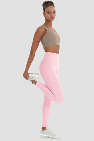 V Bel Detaylı Yüksel Bel Pembe Spor Tayt
