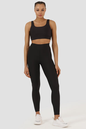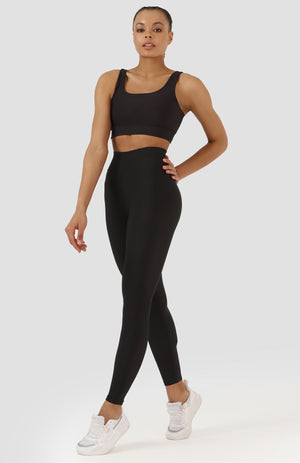 V Bel Detaylı Yüksel Bel Siyah Spor Tayt