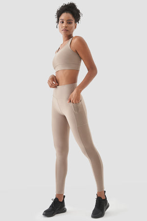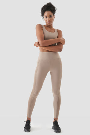 Wawel File Cep Detaylı Taş Rengi Spor Tayt