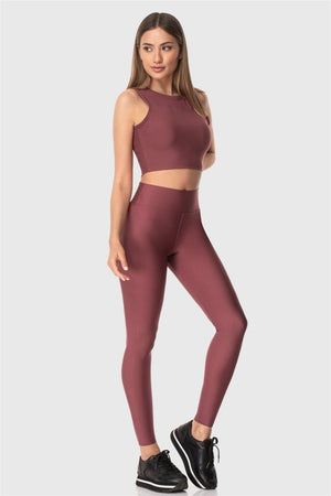 Popi Yüksek Bel Koyu Gül Spor Tayt